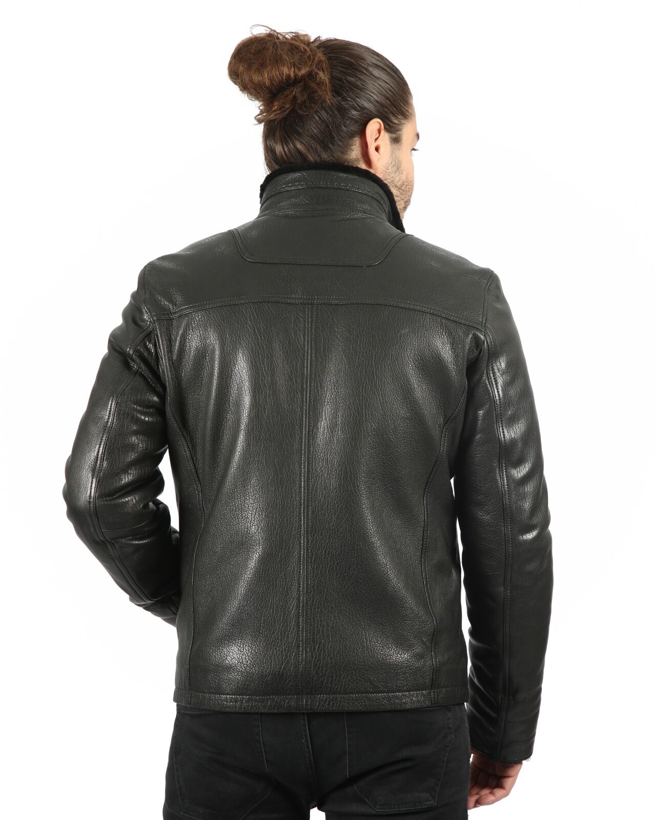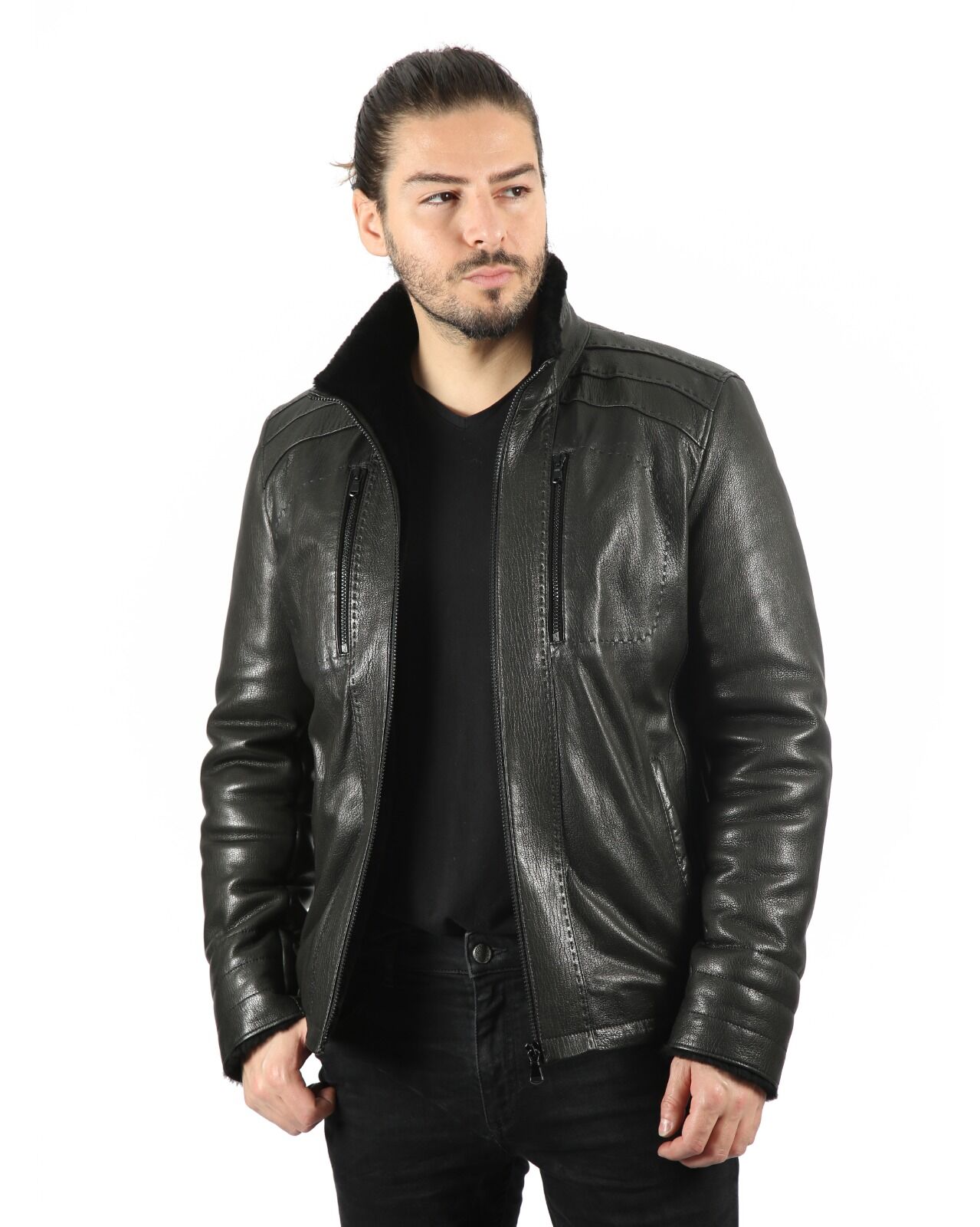 Alejan Erkek Yün İçlikli Jumbo Baskılı Kuzu Deri Mont MAKSIMK6280 Alejan Erkek Yün İçlikli  Jumbo Baskılı Kuzu Deri Mont